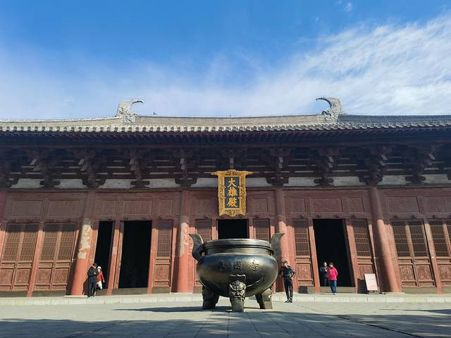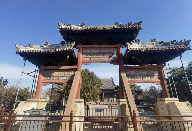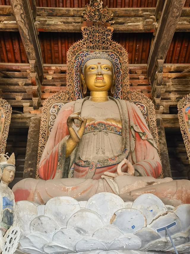 走进奉国寺大雄殿,那种扑面而来的气势和历史的厚重感,足以让任何人为之屏息,十分震撼。七尊通高超过9米的辽代彩塑泥佛一字排开,盘坐于高大的须弥座上。当站在殿内仰望,这些巨大的佛像仿佛顶天立地,其体量之巨、保存之完好,举世罕见,给人以强烈的视觉冲击和心灵震撼,我至少在大殿内踱步很多遍,来来回回欣赏。此外,每尊主佛像前还有两尊协侍菩萨像,毗婆尸佛背后还有一尊明代重修的男相倒坐观音像,也是特色独具的艺术珍品。站在殿中,能直观感受到一千年前的建筑、雕塑、绘画技艺,感受到古代匠人的智慧与虔诚,这种与历史直接对话的感觉,本身就是一种震撼。