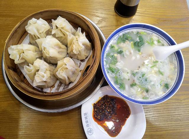 中午去住处附近随便选了一家店,一笼烧卖,一碗羊汤,吃得很满足。