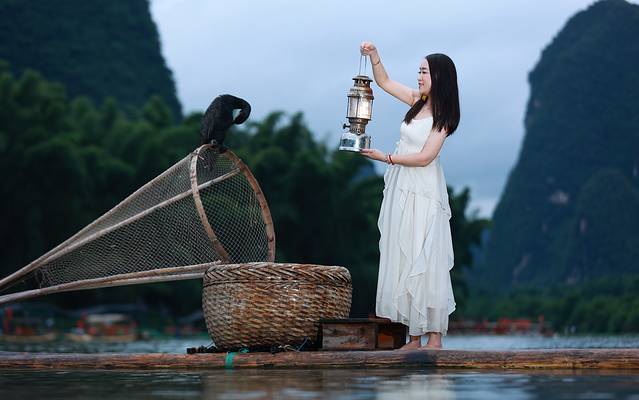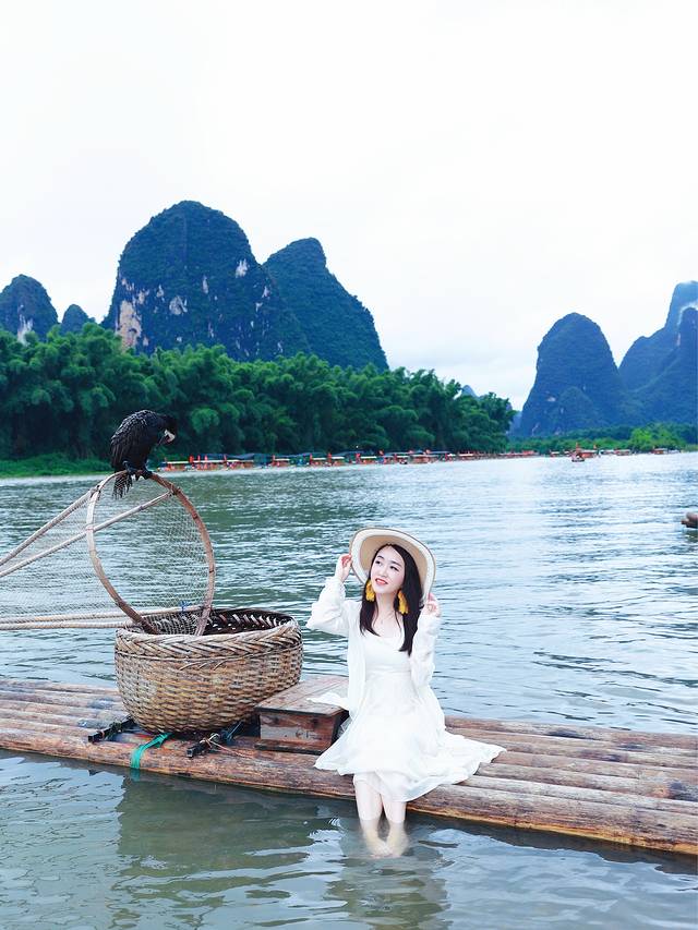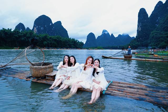 中午简单吃了碗桂林米粉,下午按计划去二十元人民币背景处。提前租好了竹筏,撑筏的师傅是个本地人,一边划一边讲两岸的故事。到了标志性的观景台,师傅帮我们找准角度,举着二十元纸币和实景合影,阳光正好,山水和人民币上的图案一模一样,神奇又亲切。自己撑筏慢慢漂,看鱼在水里游,看水鸟掠过水面,才懂“舟行碧波上,人在画中游”的意思。