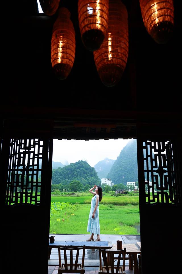 抵达阳朔时,阳光正斜斜地掠过黛瓦,拖着行李箱直奔西街的金桔酒店。酒店位置极好,几步路就扎进西街的热闹里——青石板路被踩得发亮,两旁的店铺挂着红灯笼,阳朔啤酒鱼的香气混着桂花香扑面而来。