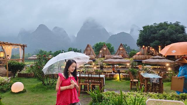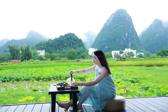 凌晨五点半挣扎着起床,打车去日初出咖啡。咖啡店藏在遇龙河边的村子里,老板已经生好了炭火,暖乎乎的拿铁握在手里,眼睛却盯着东边的山头。没多久,第一缕金光刺破云层,把遇龙河的水面照得像铺满碎钻,远处的山峰慢慢显露出轮廓,美得让人屏住呼吸。和陌生的游客一起欢呼、拍照,咖啡的醇香混着晨露的清新,这大概是阳朔最温柔的开场。