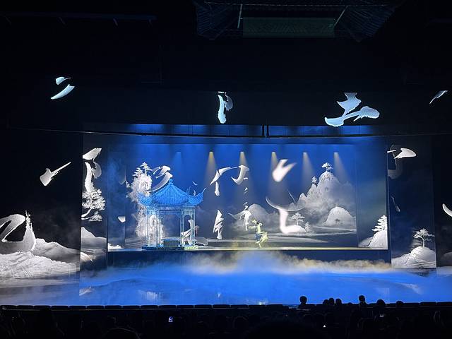 演艺城这边主要是看徽秀(从前叫徽韵),但也包含一些小型节目,类似于万岁山那种。每天开两场,下午好像三点开始,晚上八点开始,我们买的晚上那场。建议提前过去观看些小节目,顺便和NPC互动下赚取银票。可以关注黄山演艺城公众号,上面会有详细节目单,不过里面空调不太好用,有很多开放街区,所以会有很闷热。节目也算精彩,工作人员很热情。值得强调的是买票,有移动席(第一排位子,因为舞台前部中央有个伸缩台,节目需要的时候会伸出来,座椅就会拉开,不需要舞台的时候座椅就会合拢)、贵宾席(舞台两边的位置)、尊宾席(舞台中间的位置),售票处不可以选位子,可以先在网上买贵宾席的票到现场加20元升级尊宾席,比网上买稍稍便宜一点,而且可以买连坐,小朋友1米2以下免票,但是不可以占座,现场有工作人员盯着。节目一共分四幕,舞台演员表现的都很精彩,最喜欢李白和徽娘这两场,舞台特效拉满!