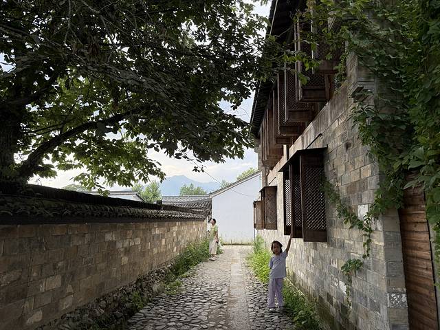 这个古镇无论住不住景区都要收门票,一张票可以玩七天,有工作人员拦在路口查看门票。开车进去吃饭,饭店也要停车费,所以这点感受不太好。而且如果要走到真正的古镇区,要起码步行十五分钟,镇子里饭馆、小超市倒是蛮多,有很多艺术生写生基地。