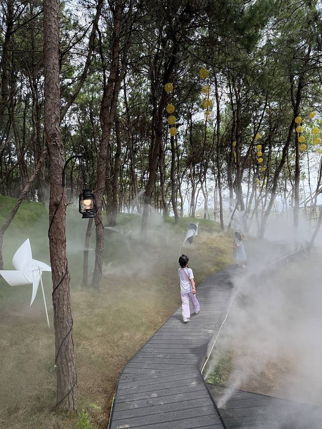 第二天朋友开车带我们来长源游玩,这个地方有点网红,需要在抖音买39元门票,这个门票可以等价换购饮品或者饭菜。里面有哪吒主题灯光,依山而建有楼梯,旁边有水雾,还有人造水池和溪流,小朋友可以在里面玩水,水池里有很多桌椅,大人可以看着顺便泡泡脚解暑。还有大片粉色沙滩,就是太热了!年轻人则更适合拍照,中间有座白色的大空调房,里面冷气十足,在外面玩热了就进来降降温,配套的有很多拍照打卡点,还很温馨的配上拍照效果图,如果不会找角度和姿势,直接对着图片来就行。还有很网红的服装和拍照道具都可以免费使用。店里还有收费拍照服务,只要人来了一切都可以搞定!