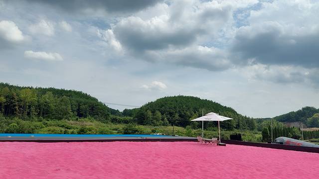 大片的粉色沙滩池,就是太热了
