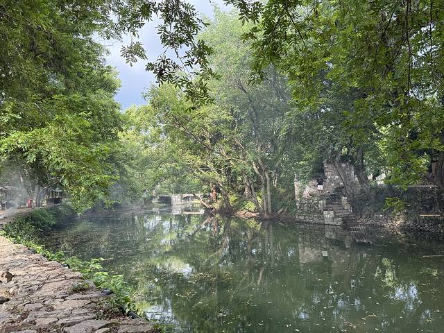 汪伦沉睡在此,李白在那厢遥望,只存这古村、这湖畔、这石板、这云卷云舒在世间