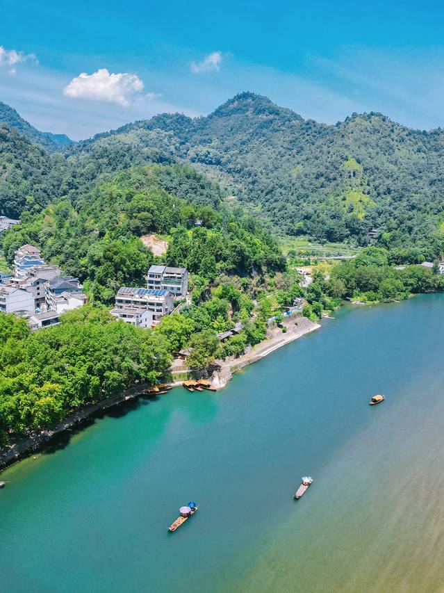 当地人都说,认识楠溪江水美的最好方式就是乘坐竹筏漂流,倚靠悠悠自在的竹椅上,顺水而下,一路层峦耸翠,滩林延绵秀美,碧水金滩蜿蜒向前,如水墨画一般的风景沿江分布,坐着竹筏飘流在碧绿的楠溪江上,岸边的绿树青山看在眼里有着赏心悦目的美好。