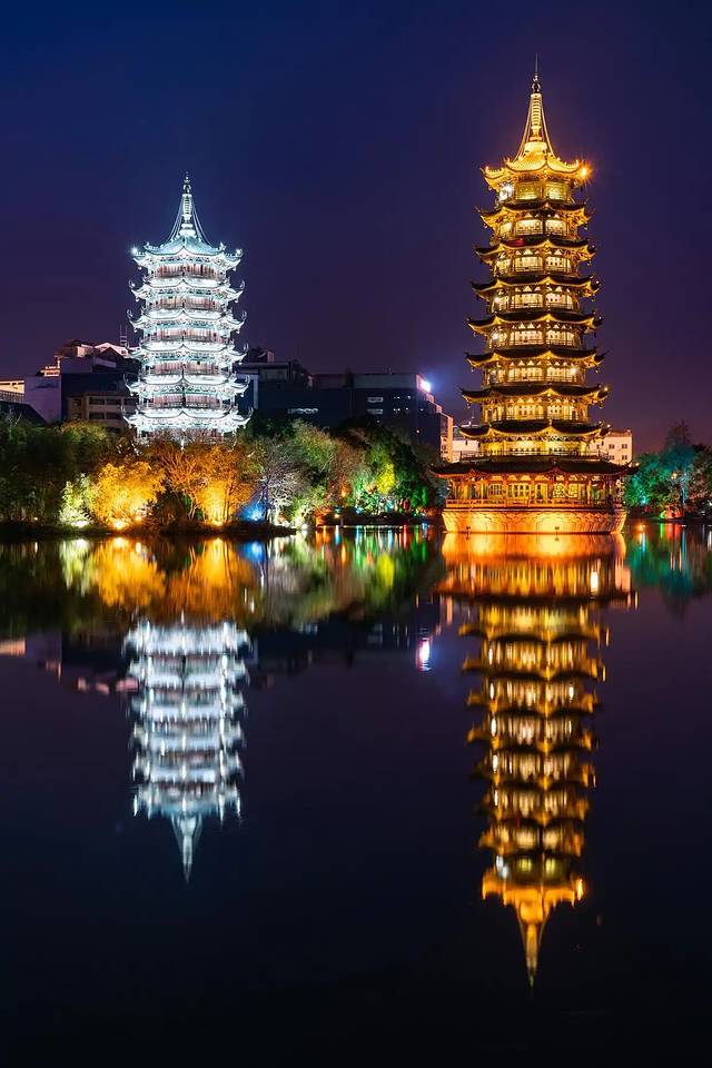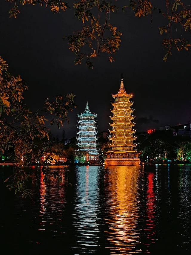 夜幕降临,日月双塔亮起灯光,一金一银在湖面投下倒影,美得让人移不开眼。沿着两江四湖散步,晚风带着水汽拂过脸颊,岸边的灯光与建筑相映成趣,我们忍不住坐在湖边发了会儿呆,享受这份宁静的惬意。晚上住进花筑·贡后巷8号院,中式庭院雅致又温馨,四人挤在一间房里,睡前还在兴奋地复盘白天的趣事。