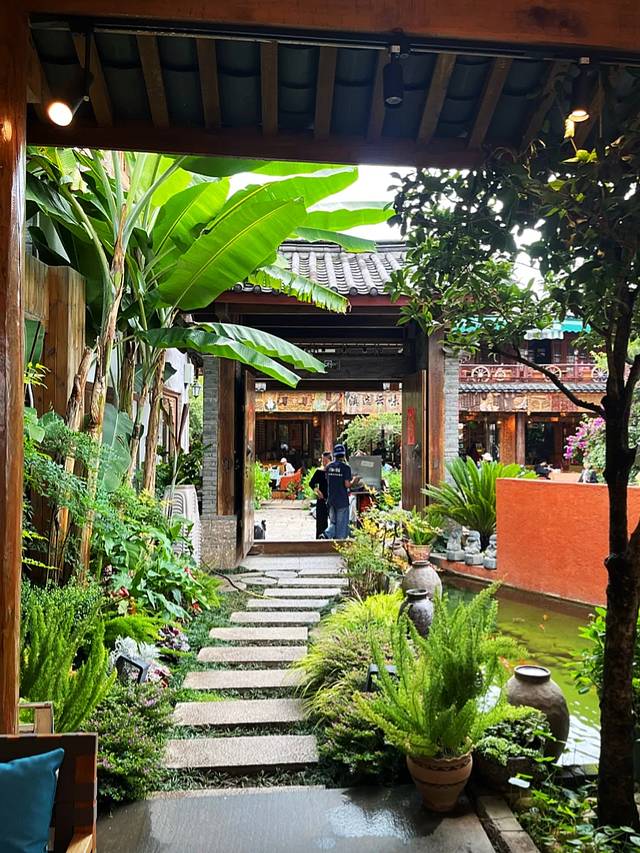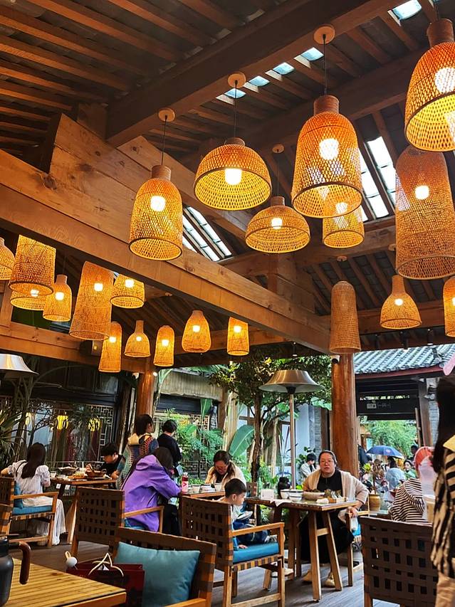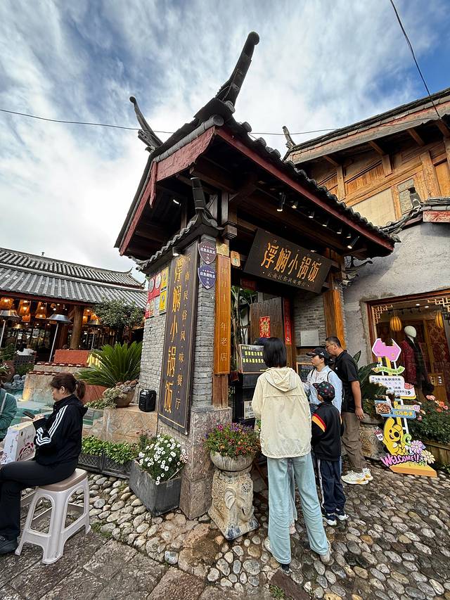 在飞花路上,束河古镇排队王,环境很好,花草环绕,11点半到12点过来可以直接吃,再晚点就需要排队了。