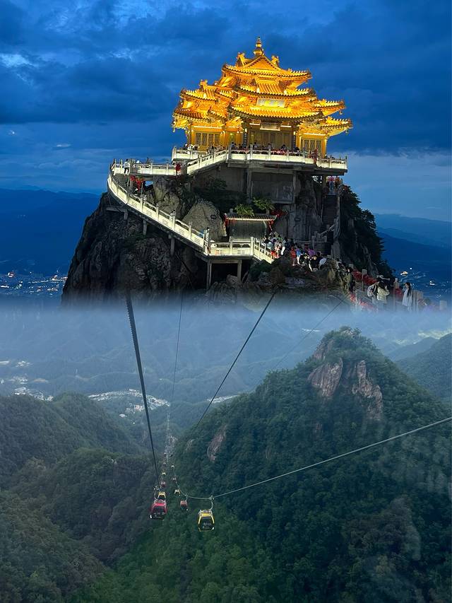 当夕阳为金殿镀上金边,云雾漫过十里峰林,我真正体会到了什么叫"远赴人间惊鸿宴,一睹仙山盛世颜"。金顶亮灯时间随季节调整,冬季大约在17:40-18:10之间。灯光逐渐点亮,整个金顶道观群在暮色中宛如天宫,美得令人窒息。