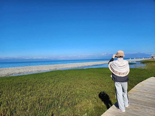这次去赛里木湖,真的是眼睛被“喂饱”了!刚到景区门口就瞅见一片蓝,不是那种普通的湖蓝,是带着点透亮的、像把天空揉进去的颜色,尤其晴天的时候,湖水跟远处的雪山、白云凑一块儿,手机随便拍都不用加滤镜。