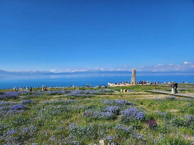 我们是坐景区区间车玩的,第一站就去了松树头,站在观景台上往下看,整个赛里木湖像块大蓝宝石嵌在草原里,还能看见果子沟大桥横跨在山谷间,特别壮观。后来到了克勒涌珠,这儿的湖水更清,能看见底下的石子,运气好还碰到几只天鹅慢悠悠游过,一点不怕人。