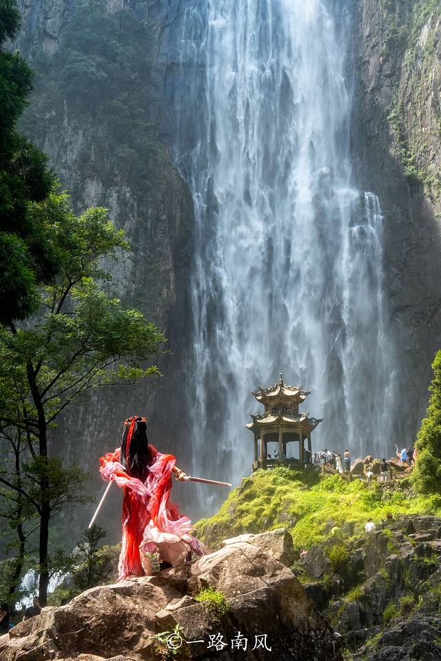 来到百丈漈,脑海里出现各种武侠片的经典场景。