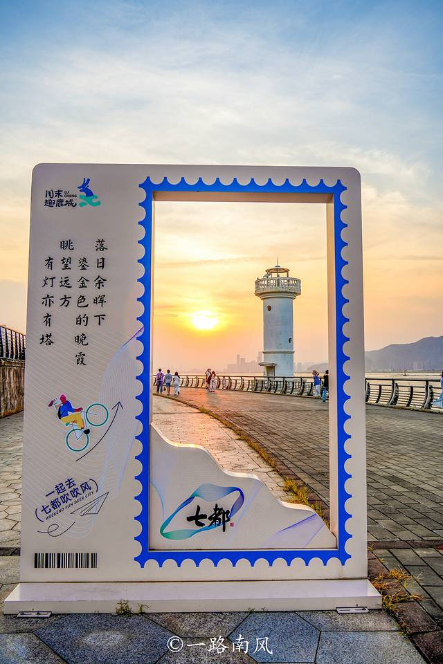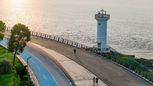 当霞光浸染西天、铺满江面之时,留下几张与灯塔的合影,不虚此行。