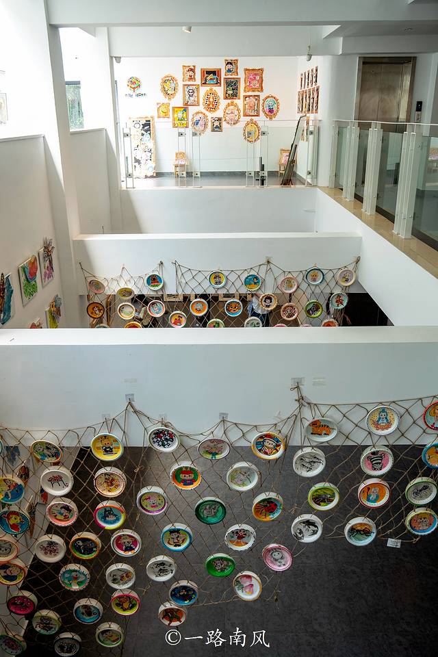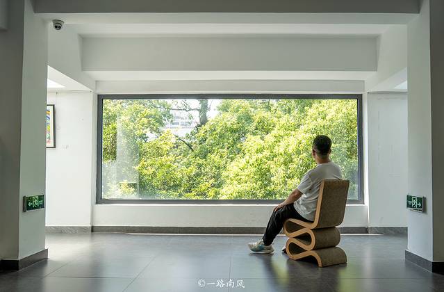 置身于温州美术馆这座线条优美的建筑中,可以观赏到各种创意美术作品。二楼以上,每层都布置有经典观景机位,三楼落地窗机位的拍照效果最为出众。