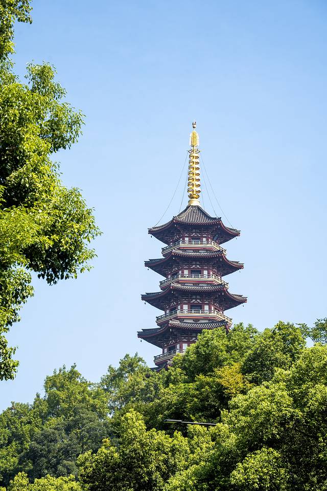 净光塔始建于唐代,最初为供奉永嘉大师玄觉真身舍利而建,采用了唐楼阁式木塔风格。塔顶的纯铜鎏金构件所组成的塔刹高达15.6米,堪称浙江之最。