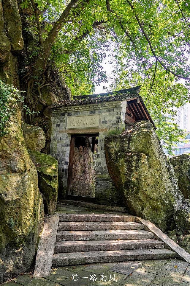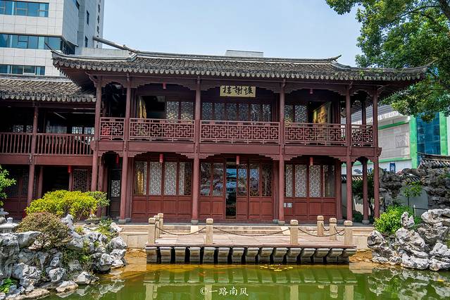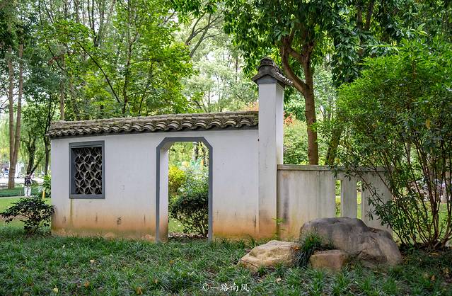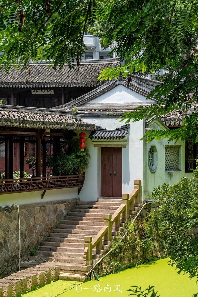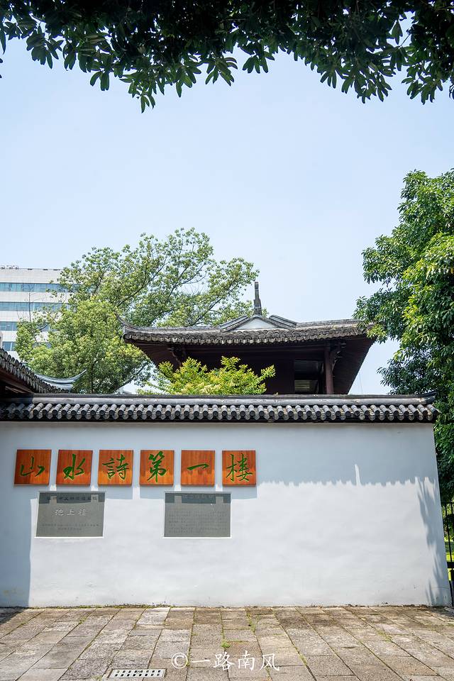 沿着中山公园的幽径一路往南边走,穿过月带桥就看到有“山水诗第一楼”标志的白墙。