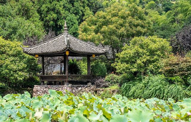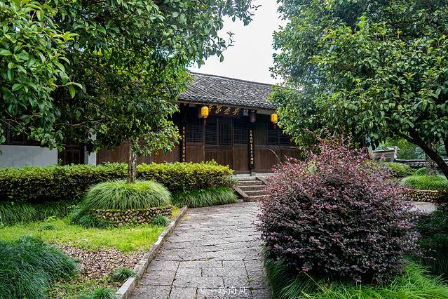 承袭江南园林风格,恰好在刘伯温读书旧址之上,葱郁的树木静谧环绕,白墙灰瓦悄然融于自然环境。