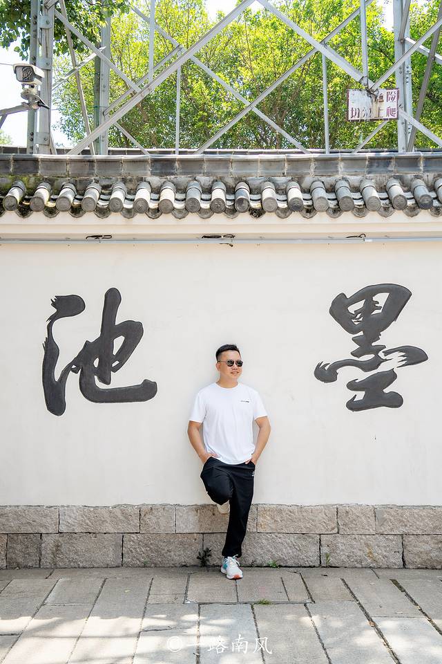拍照机位推荐:公园门前的“墨池”墙,公园内的“墨池”墙。