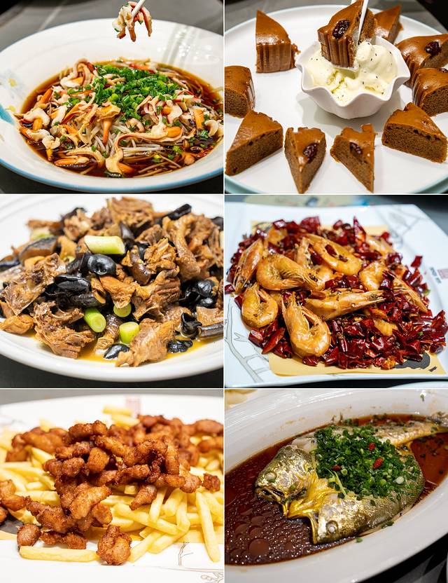 推荐:温州鱼丸敲鱼汤、葱油黄鱼、葱油北极贝边、红糖发糕拼九山湖冰激凌