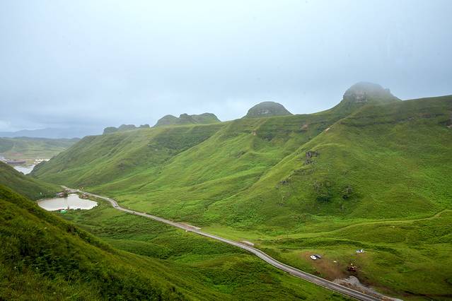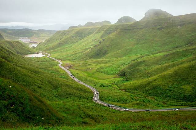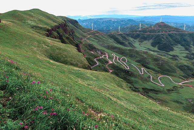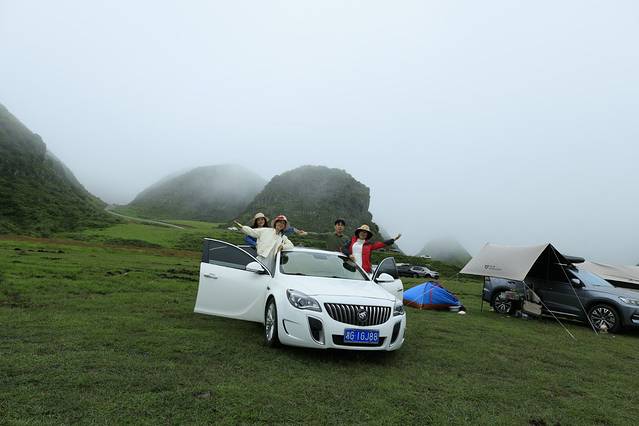 我们从兴义出来,在去下一站阿西里西大草原的高速上遇上大堵车,天黑了才行驶至山脚,索性找个地就住下了。一大早,车子爬坡,快到山顶时,漫山草甸,景色秀丽。