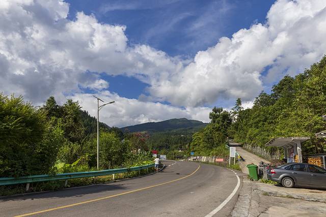 一团棉花糖飘荡过来,我往后退几步,把阴处、阳光、峰锥、白云尽收镜中!