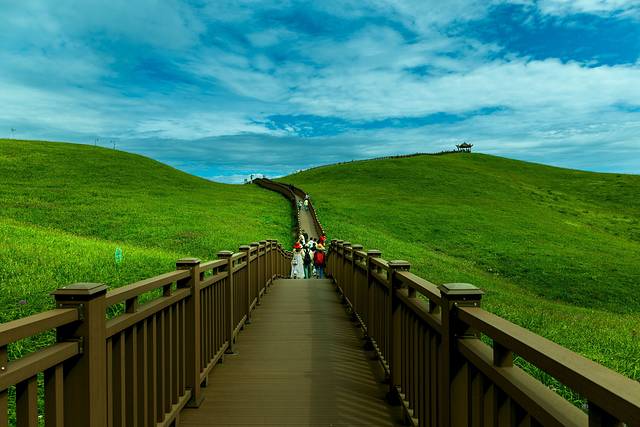 这里是草原,地上是连绵不绝的草场;这里也是山峦,那驼峰般的小山头,独立不相连,同根不断线,将草原自然分割成一片片独立的港湾。