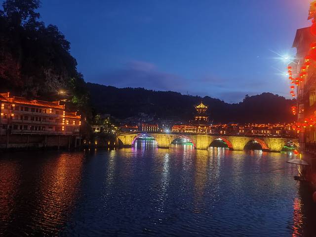 我们住的民宿,依着舞阳河,阳台上就可以拍的这么美的夜景