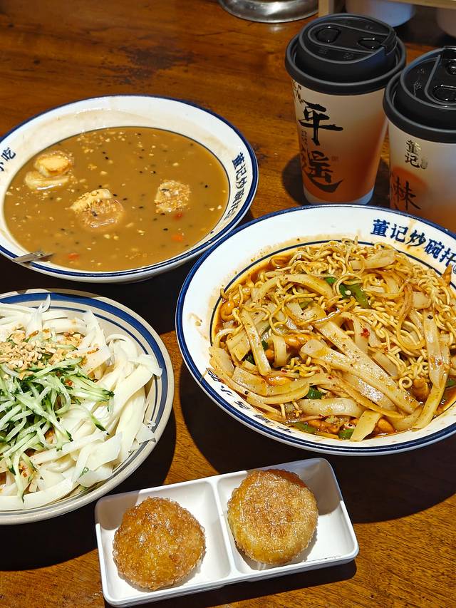 董记炒碗托:我心目中的宝藏平遥小吃店!回来几天了还是很馋这一口!火腿麻花炒碗托、凉拌碗托、油泼面、泡泡油糕、蘸汁栲栳栳、沙棘醪糟汤…都好好吃,可以看现场炒碗托