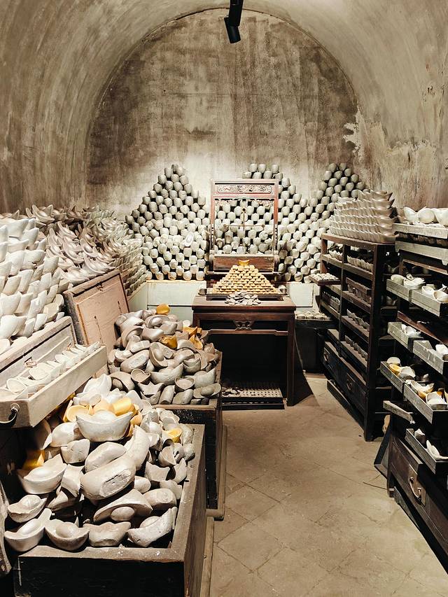 要参观这座地下金库,必须从协同庆四院下方的一条十分隐秘的通道进去。进入后首先是一条金光闪闪的“财路”,通往金库核心地带。内部总面积达300多平方米,由10间窑洞房组成,各个窑洞分工明确,如今这里复原了之前的摆设,里面陈列着各种金锭银锭,或者金库伙计的蜡像,让游客参观时沉浸感满满。令人震惊的是,根据测算,协同庆地下空间当时可储存的黄金白银,相当于现在的人民币300多亿!真是“壕”气十足!