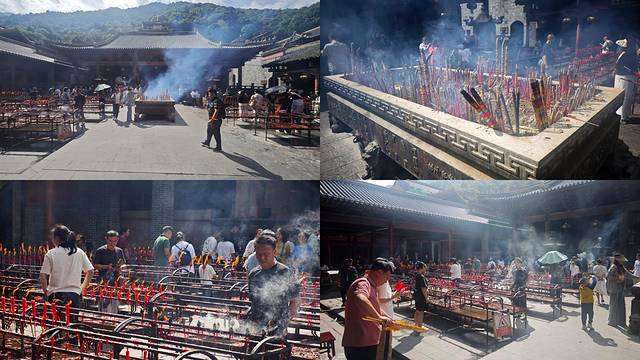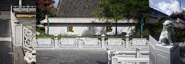 灵山寺的建筑很有特色,算是少有了建筑以黑色为主色的寺庙(一般为红色)。布局以 “七星抱月” 闻名,寺庙座南朝北,以灵山为背,药沟山为屏。正殿与前殿及中厢之间为大天井,左右中厢、边厢与正殿及前厅、前殿之间构成 4 个小天井,殿门与前殿及中厢、左右下厅之间构成 3 个小天井,7 个小天井环抱大天井,故称 “七星抱月”。山门外有 6 棵苍劲挺拔的参天古松,粗有三四人合抱,树龄至少在两百年以上,是灵山寺的重要标志。