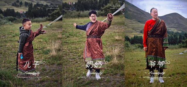 新都桥的民宿很多都有免费的藏服提供,早上起来,老人小孩玩了一下藏服cos,还是挺嗨的。