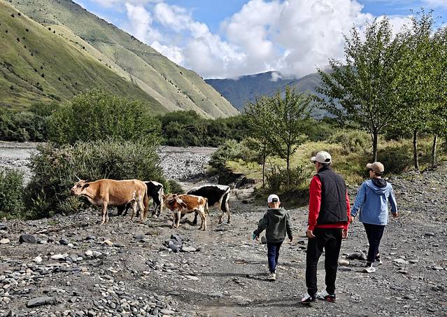 走这条路会经历河滩、峡谷、草原、雪山、森林,像热门的冷噶措,子梅垭口等一众离贡嘎最近的“日照金山”观景点,也都在这条路上,由于带着老人,去的时候山上天气不好就没有去。如果天气好,对身体有信心的朋友还是值得去看看,可以开车上去,也可以骑马上去。