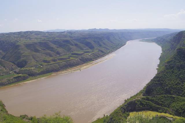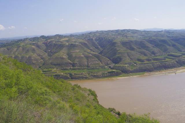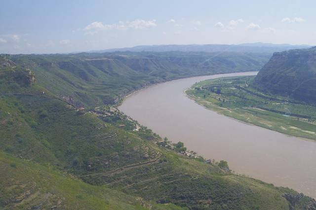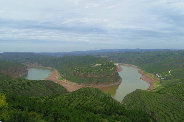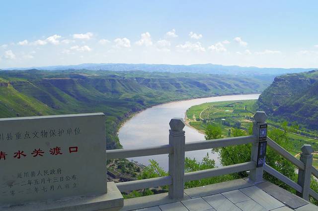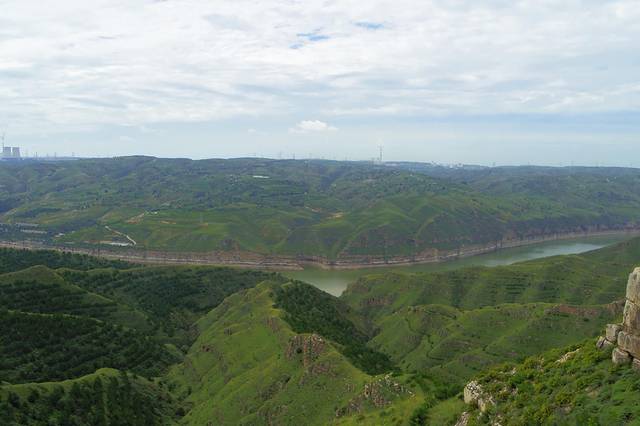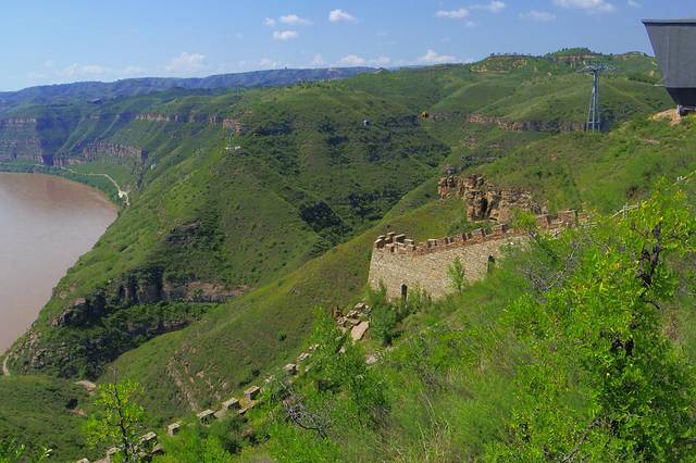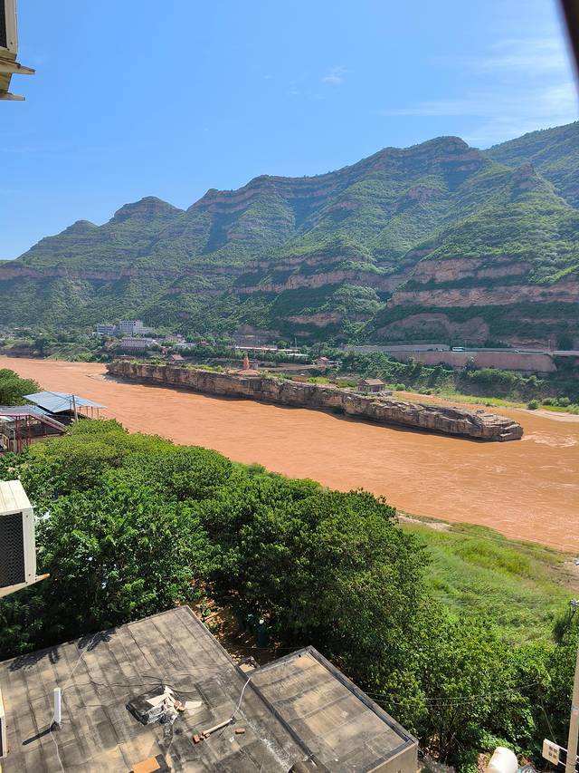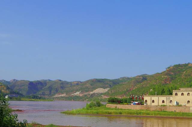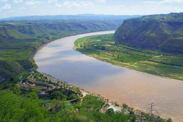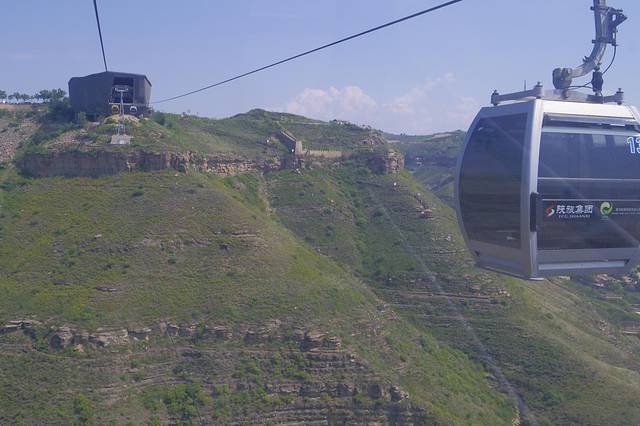 起初,缆车平稳上升,我能清晰地看到清水湾观景台上游客们如蚂蚁般渺小的身影,他们或驻足拍照,或凭栏远眺,沉浸在黄河湾那圆润饱满的305度大弯美景中。再远处,黄河水如一条蜿蜒的丝带,蜿蜒于黄土高原的沟壑之间,水流平缓,在阳光的折射下,闪烁着粼粼波光,与岸边古朴的村落、葱郁的植被相互映衬,勾勒出一幅宁静而祥和的山水画卷。