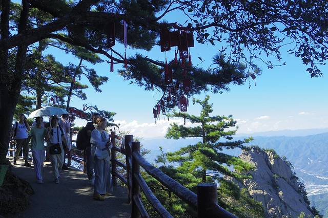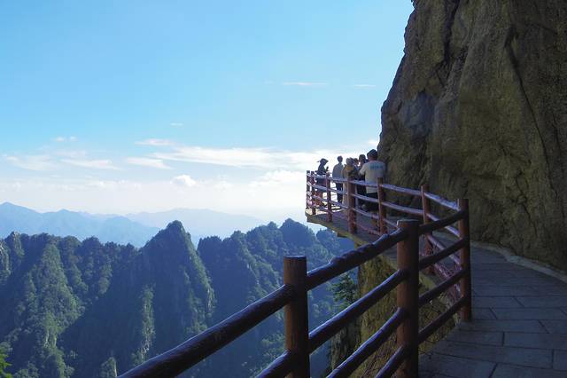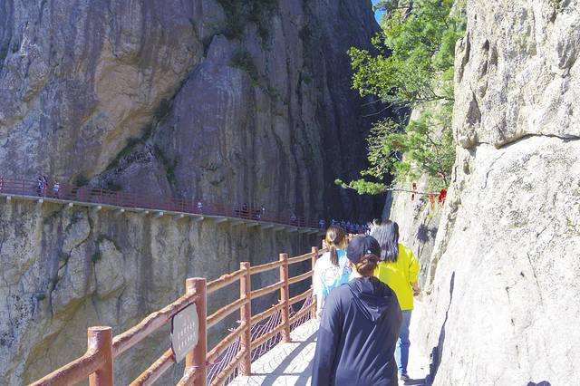 出了第二程索道站,直接前往十里画屏。这里是一条长达5公里的花岗岩峰林步道,奇峰怪石林立,如“老子传经”“鸾凤和鸣”等,每一处都展现着大自然的鬼斧神工。走在悬崖栈道上,一边是峭壁千仞,一边是万丈深渊,惊险刺激的同时,能将绝美峰林景色尽收眼底。