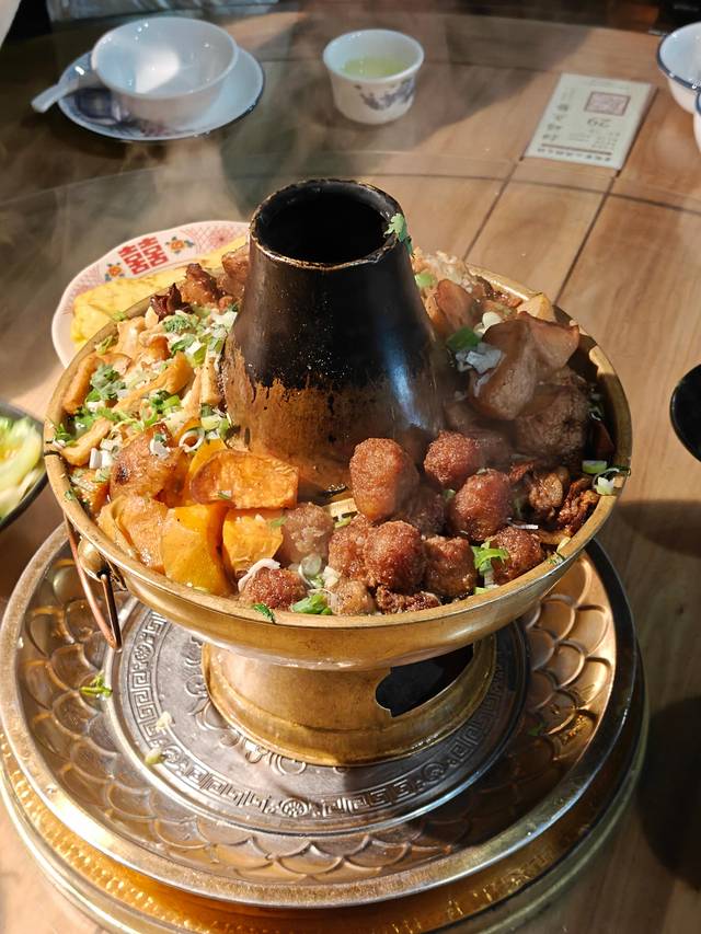 山西的特色铜火锅,跟川渝的火锅不一样,食材都提前摆好放在锅里煮,加上营养高汤,越煮越香,老赵家有秘制的酱料,蘸着吃味道更丰富。而且小锅价格也不贵,性价比很高。