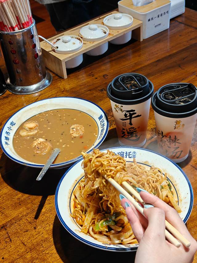 很有特色的小吃店,小吃种类特别全,还上过山西卫视。他家炒碗托是现炒现卖的,还可以加上各种喜欢的配菜,口感丰富,不知道加什么就加麻花火腿方便面。凉拌的碗托也好吃,爽滑Q弹,喝上一杯酸酸甜甜的沙棘醪糟汤,特别解腻。