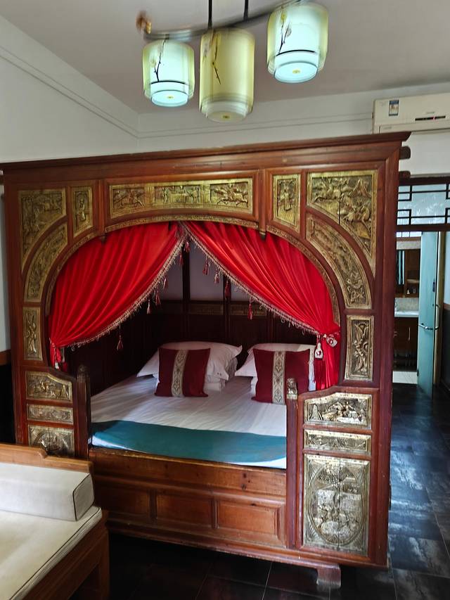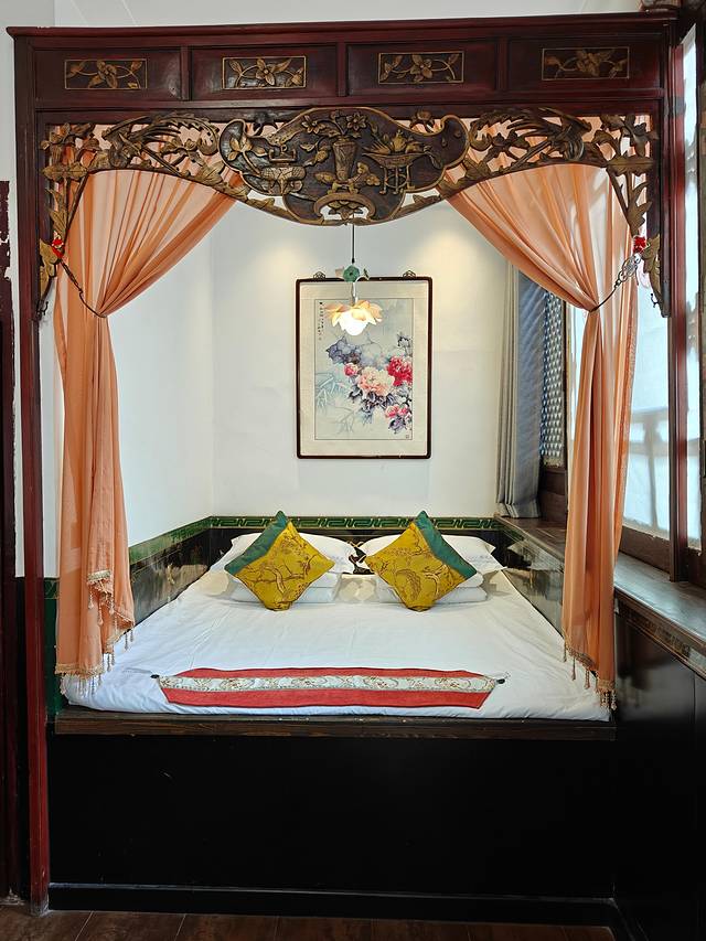 慢生活是一家由古色古香的四合院改造而成的特色民宿,就在县衙附近的巷子里,出门还可以乘坐游览车,非常方便,院子虽小,但融合了明清古建元素和现代设计,夜晚亮灯后充满古风氛围,房间房型很多,有土炕房、龙凤床房、影音房等,设施齐全。