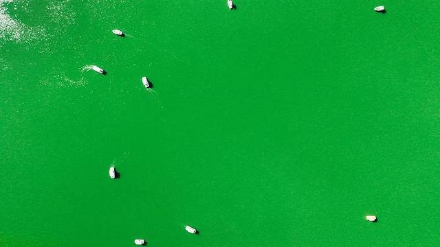 午后的湖面翠绿,这里的时光仿佛是停滞的,没有车水马龙,没有匆匆步履,只有山与湖的相守,人与景的相依。