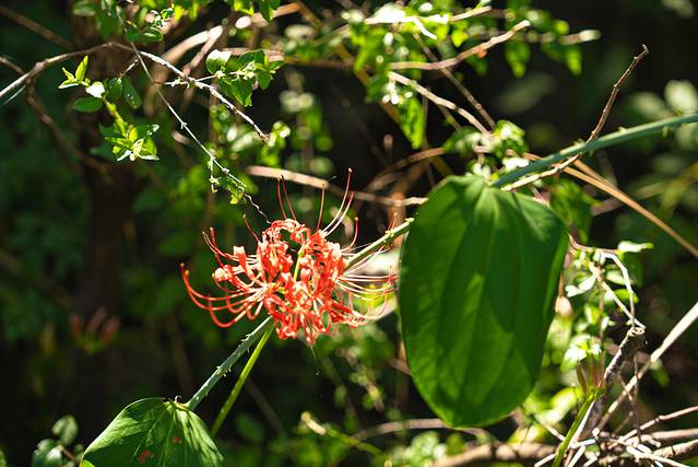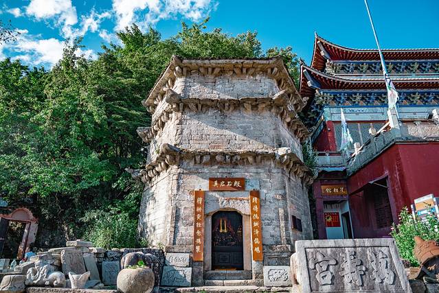 沿着寺庙后山的小径往上走,两侧常有曼珠沙华。在小径延伸处有一座多佛塔,塔身由青石砌成,像在无声地讲述着通山千年前的故事。