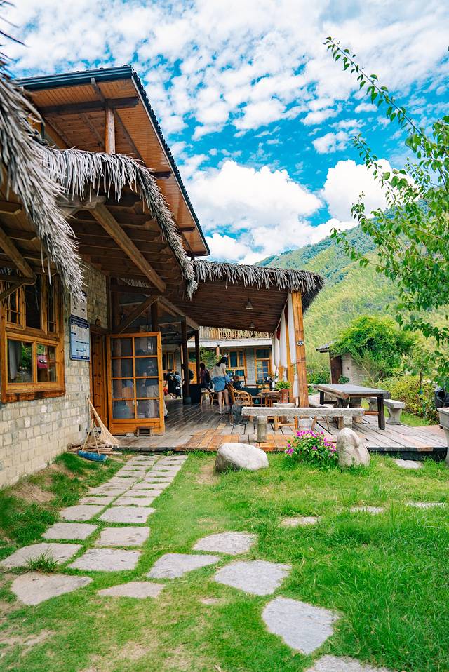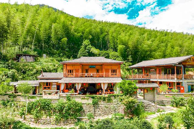 摆着一张小茶几,泡上一壶本地茶,坐在椅子上往外看,能看见远处的山尖和天上的流云。清晨是被鸟叫醒的,拉开窗帘,阳光透过竹叶洒在地上,像撒了一把碎银;坐在院子里的秋千上,所有的疲惫都烟消云散。