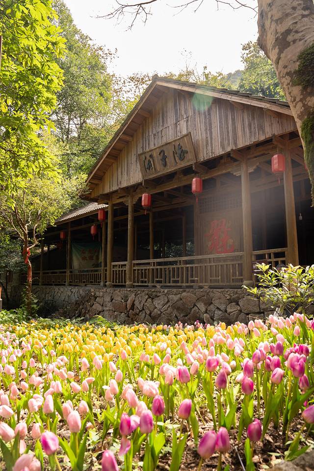 九宫山的惬意,有一部分是竹林下的民宿给的。民宿依山而建,木质的屋顶、石砌的墙,被层层叠叠的竹海包裹着。