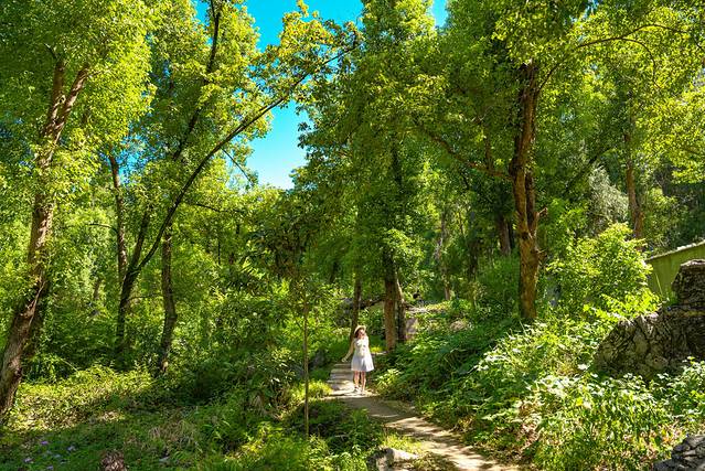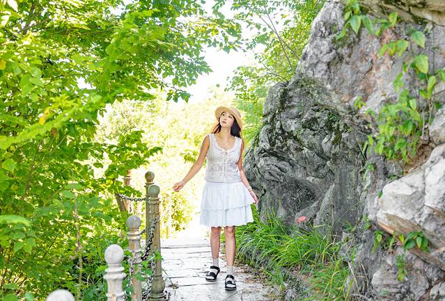 沿着石阶往里走,水声是向导,有时是细流从岩缝中渗出,有时是激流的溪涧。阳光透过层层叠叠的树叶筛下来,在地上落满铜钱似的光斑,走累了便坐在潭边的石头上歇脚。
