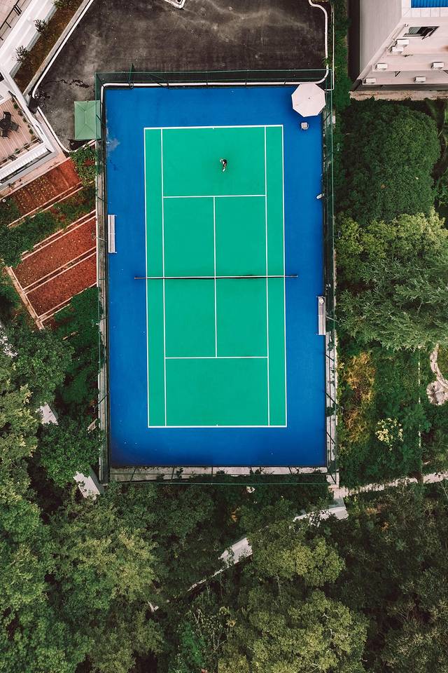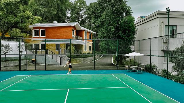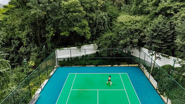但最让人意外的,是酒店藏着一个森林网球场!谁能想到,在这深山里,竟有一个按国际标准建设的网球场?