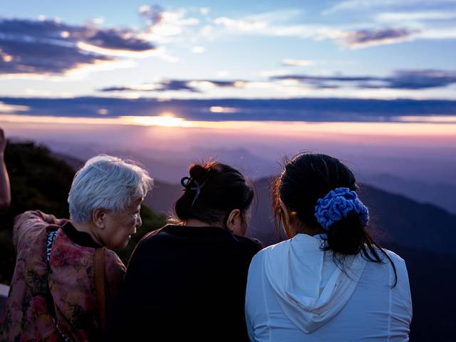 日落后山风会更大,建议带件防风外套。从云中湖乘景区观光车到铜鼓包约20分钟,看完日落返程的车会不间断运游客下山。