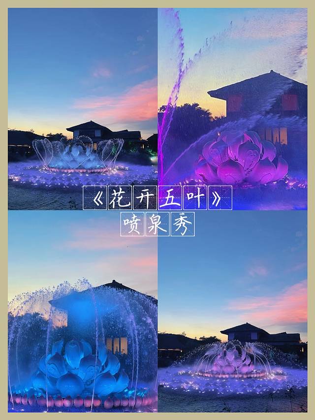 【花开五叶】五灯湖广场的喷泉秀,花之仙女含苞待放,四周喷泉齐出随着音乐翩翩起舞,美仑美奂。