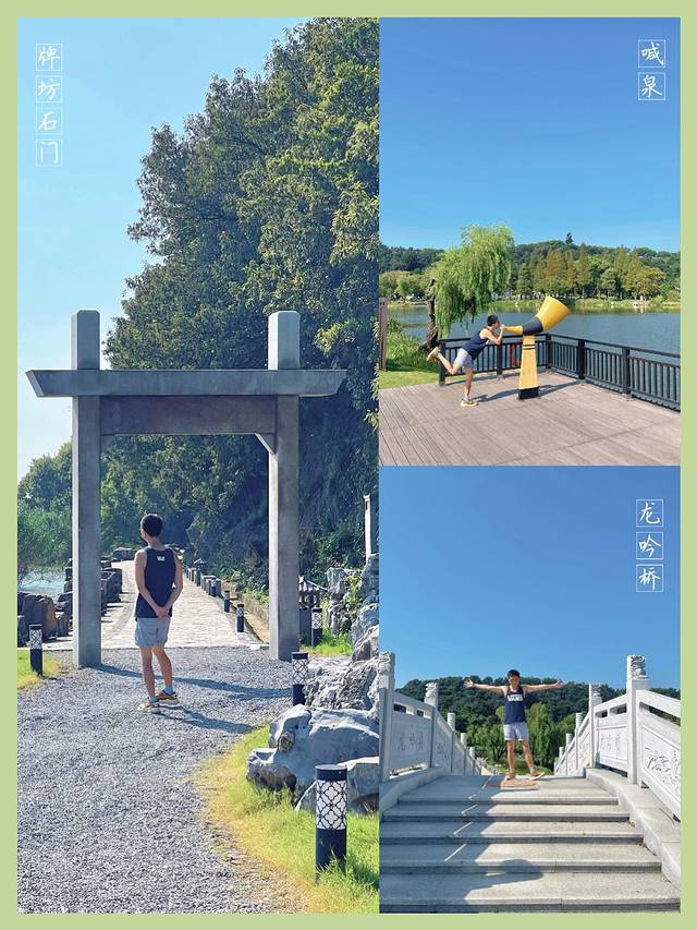 牌坊石门-湖景通道-喊泉-龙吟桥-凝碧池-踏沙桥-太湖龙马石-望龙亭-龙嬉滩-续颈桥-蛤蟆石-龙头渚石碑-龙头-马迹石-龙头亭-青龙宫-杨梅园-回头是佛-寻龙驿