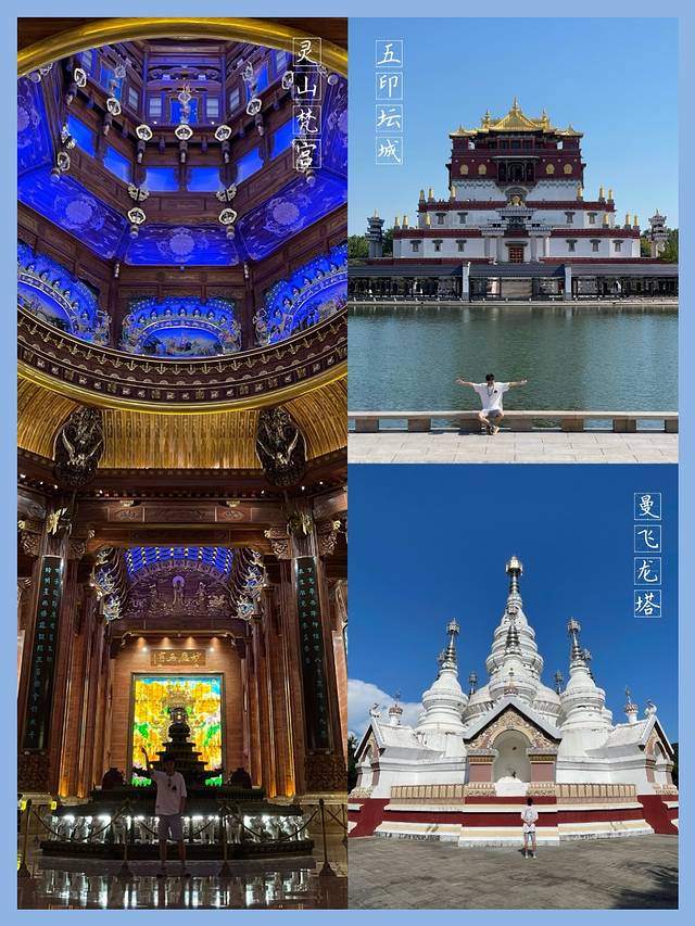 【关于出片】和灵山大佛击掌一定要拍、祥符禅寺里的双佛同现要拍、梵宫里的穹顶星象图、五印坛城的藏式建筑要拍;