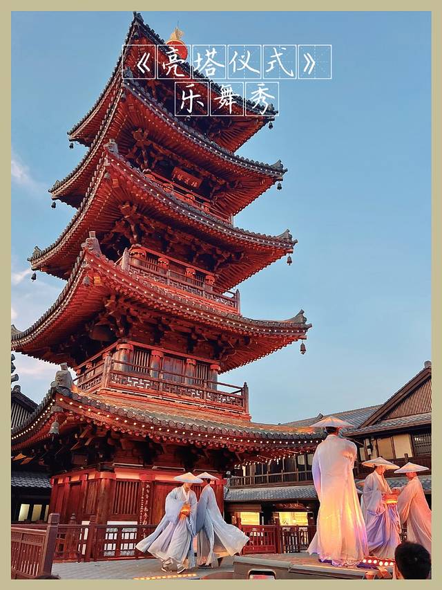 【亮塔仪式】拈花塔下的乐舞秀,仙韵小伙持钵出场,古风少女撒花而下,塔身灯光随着夜幕逐渐亮起,声色流光。