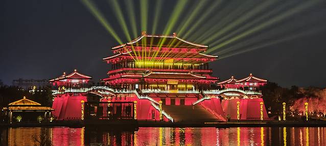 大唐芙蓉园:是按皇家园林的风格建造,风景非常优美,以紫云楼为中心有山有水,仿唐朝的建筑风格,再加上仿唐风格的表演,是一个非常漂亮的地方